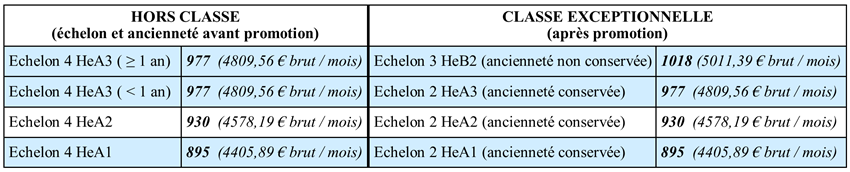exceptionnelle. - Modalités d’évaluation des promouvables. - Reclassement après promotion à la classe exceptionnelle. - Rémunération - Grille indiciaire. - Rythme d'avancement d'échelon. - Textes de référence.