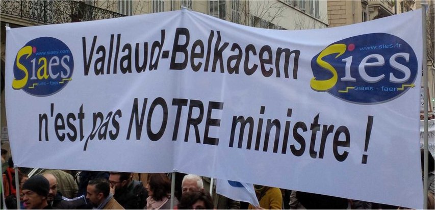 Nous formulons le voeu que cette rentrée scolaire soit la dernière de Najat Vallaud Belkacem en tant que ministre de l’éducation nationale. Gageons que les électeurs et l’histoire se chargeront très prochainement de la renvoyer au néant dont elle a été tirée par celui qui l’a nommée à ce poste. Les citoyens - et les professeurs en particulier - sont de plus en plus nombreux à avoir du mal à réprimer la nausée qui les prend à chaque apparition de la ministre de l’éducation nationale dans les médias ou à la seule évocation de son nom et de ses ineptes réformes. Les professeurs sont exaspérés par la propagande ministérielle, relayée par les syndicats réformistes SE-UNSA et SGEN-CFDT, et par l’aplomb avec lequel la ministre enchaîne depuis deux ans les mensonges face aux médias et aux parents. Ils n’oublieront pas le mépris sans précédent de la part d’un ministre de l’éducation nationale pour le savoir et le dialogue social, ni le soutien sans faille qui lui a été accordé par le Président de la République et le Premier ministre. Najat Vallaud Belkacem a poursuivi les noirs desseins de son prédécesseur, Vincent Peillon, dont la Loi de refondation de 2013 portait les germes de toutes les réformes qui ont suivi : rattachement du collège à l'école primaire (2013), primarisation du secondaire, secondarisation du supérieur, réforme des rythmes scolaires, destruction des statuts des professeurs (2015), augmentation de la charge de travail et du temps de présence des professeurs dans les établissements, renforcement des prérogatives des chefs d’établissements, réforme du collège (2016), nivellement par le bas, égalitarisme forcené, renoncement et laxisme, diminution des exigences disciplinaires, passage automatique en classe supérieure, suppression des notes, nouvelles atteintes à la liberté pédagogique individuelle des professeurs, absence de réelle revalorisation, paupérisation des fonctionnaires, déclassement moral et social des professeurs, suppression d’une prime de 500 euros, et bientôt suppression du rythme d'avancement au grand choix et suppression de la grille indiciaire des bi-admissibles. Rappelons que la Loi Peillon a été activement soutenue par le SNALC-FGAF, le SE-UNSA et le SGEN-CFDT, tandis que la FSU (SNES, SNEP, SNUEP...) s’abstenait. Le SIES n’a jamais cessé de combattre la Loi Peillon, de demander son abrogation, comme celle des décrets Peillon - Hamon et des textes relatifs à la réforme du collège.